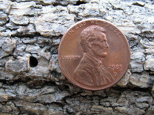 Exit/Entry Holes: Exit or Entry holes are small holes in the bark of your tree, typically round, oval, or d shaped.Cause: These holes are a sign that your tree is infested with boring insects. Some pests can carry fungi and diseases which can infect your tree. |